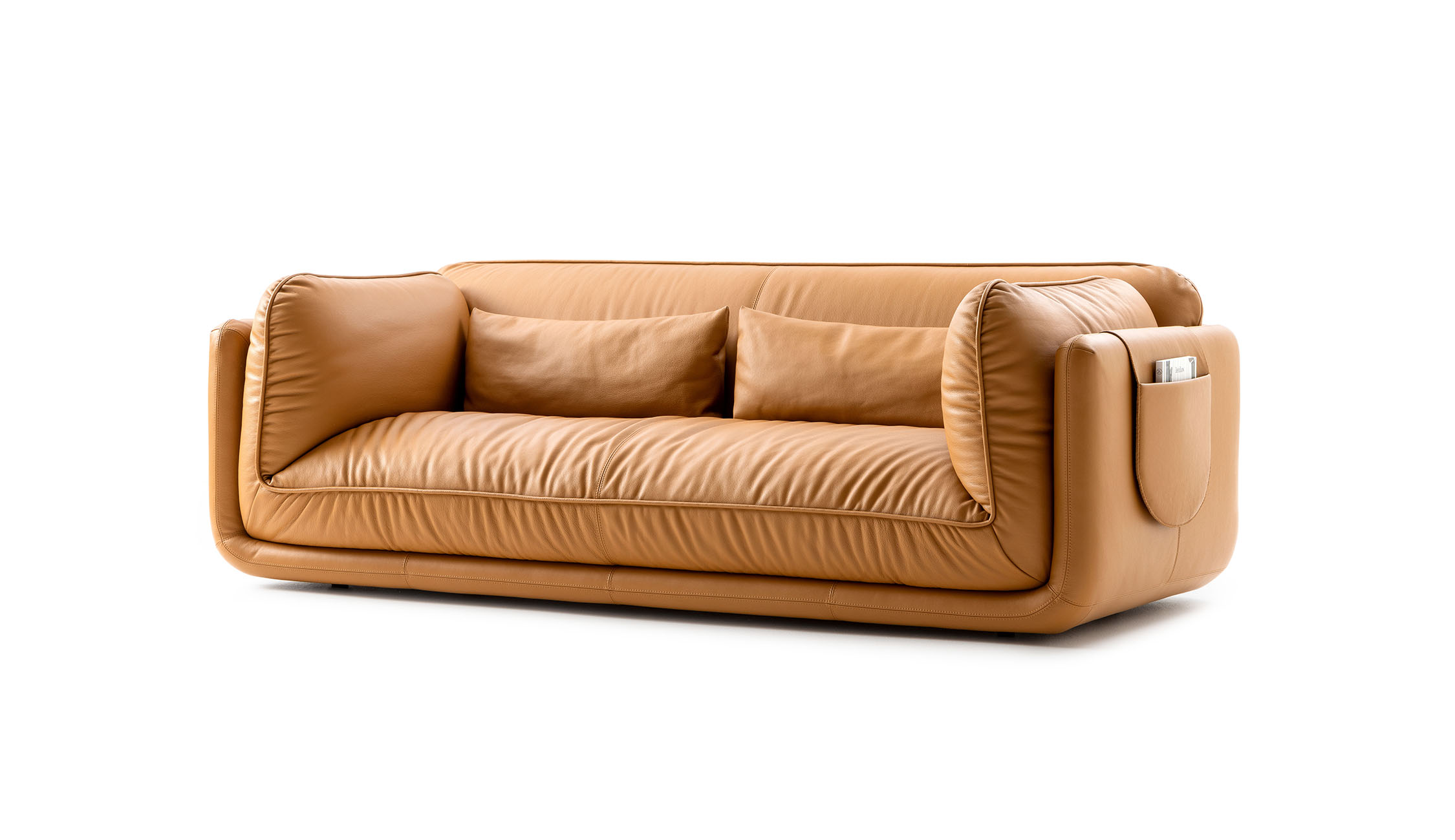 cushion. For a “mix & match” style, the material and colour of the sofa body can differ. Positioned on the side sections, the cushions afford a congenial face-to-face conversation between two people – with their legs totally relaxed on the soft upholstery.