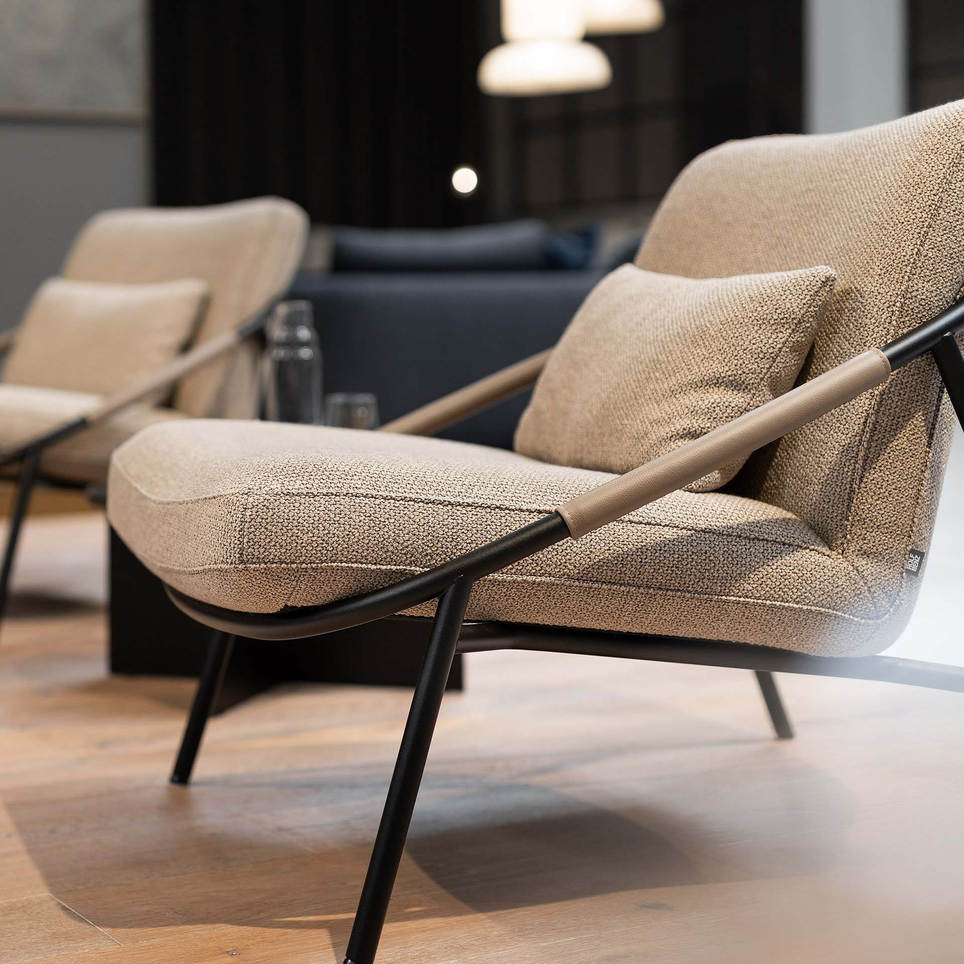 Whilst Rolf Benz LUKE makes a stylish statement as a standalone item in any room, the elegant statement armchair can also be combined perfectly with many other sofas. Its relaxed design is defined by a metal framework in Silk grey or Black that makes the comfortable seat and backrest upholstery appear to float.