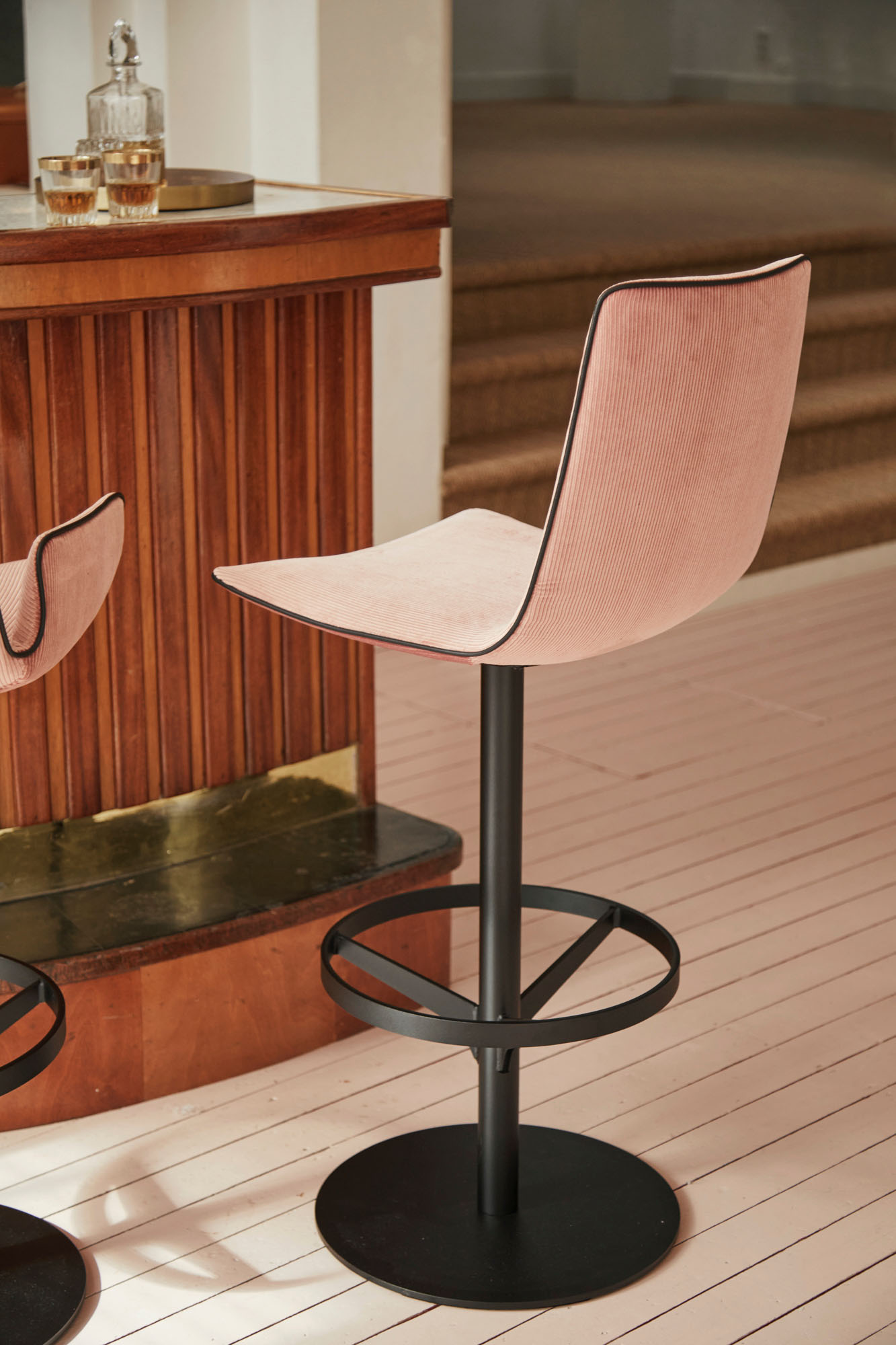Amelie COUNTER CHAIR on saadaval kolmes kõrguses – baari, leti või köögisaare jaoks. Seljatugi on valikus madala ja kõrgena, tagades mugava istumise igas olukorras.