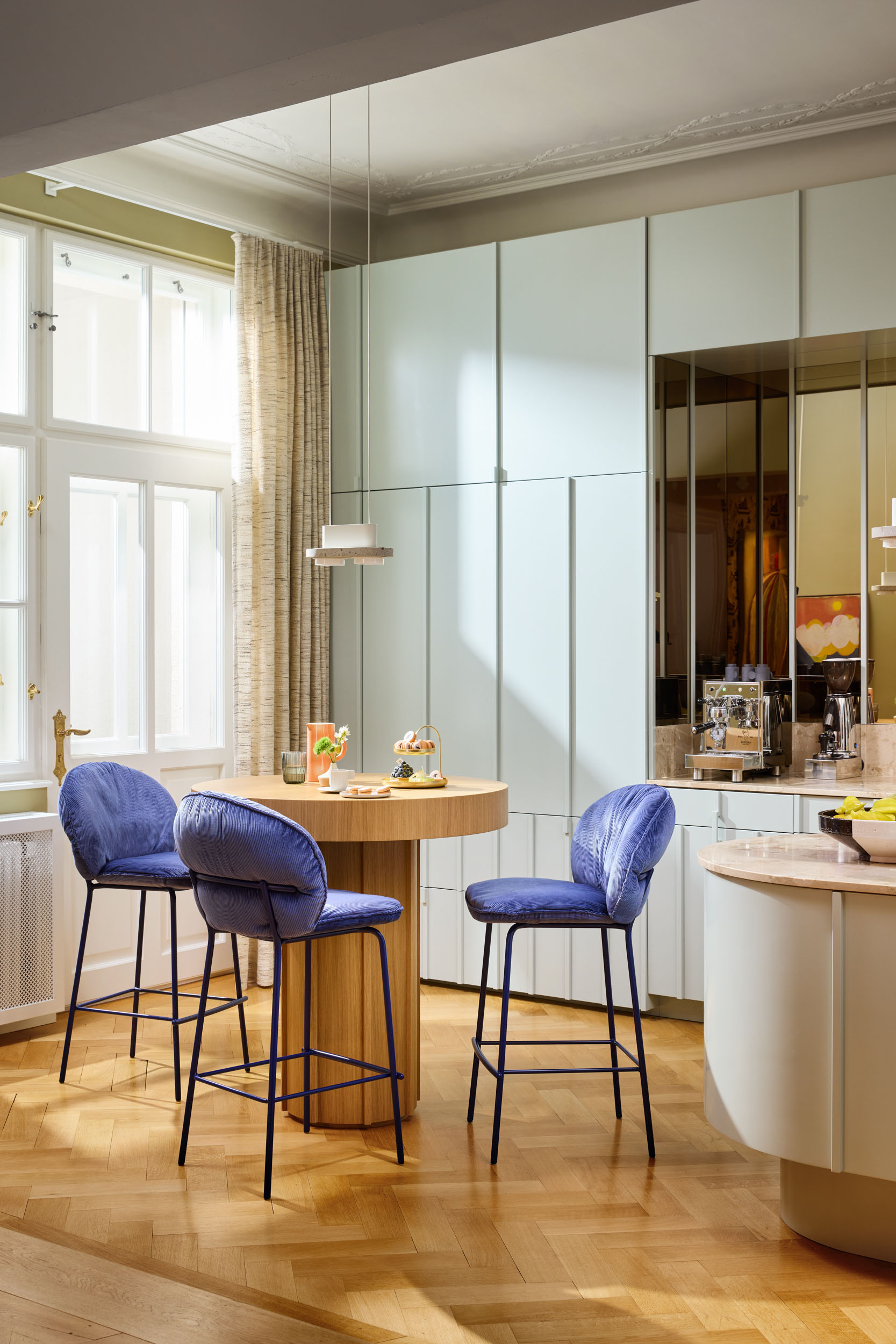 Marie iseloomulik polsterdus jääb ka siin disaini keskmesse, ühendades visuaalse elegantsi ja istumismugavuse. Olgu modernses avatud köögis või pilkupüüdva aktsendina esinduslikus baaris – Marie baaritoolid sulanduvad loomulikult kollektsiooni ning rõhutavad ajatut ilu ja funktsionaalsust.