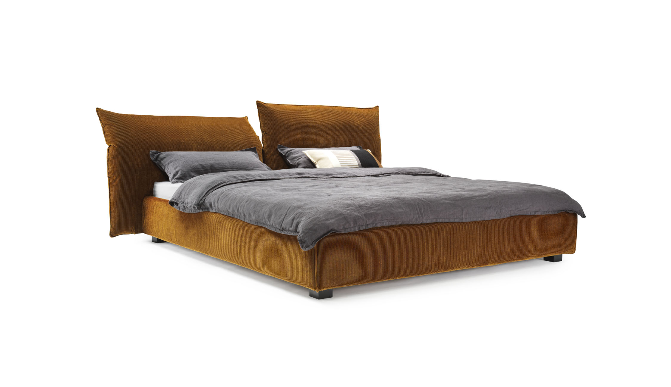 Näiteks rõhutatult ümarad jalad ja kergelt kitsenevad küljed. Voodist hõngub kergust ja ilu kõige puhtamal kujul. Üheks äärmiselt põnevaks detailiks on veidike ettepoole kaldus olev voodipeats, mis koos keskmise tugipostiga loob voodi esteetilise olemuse. Seda ümbritseb kvaliteetsest nahast „põll”, mille sees paiknevad kohevad padjad.